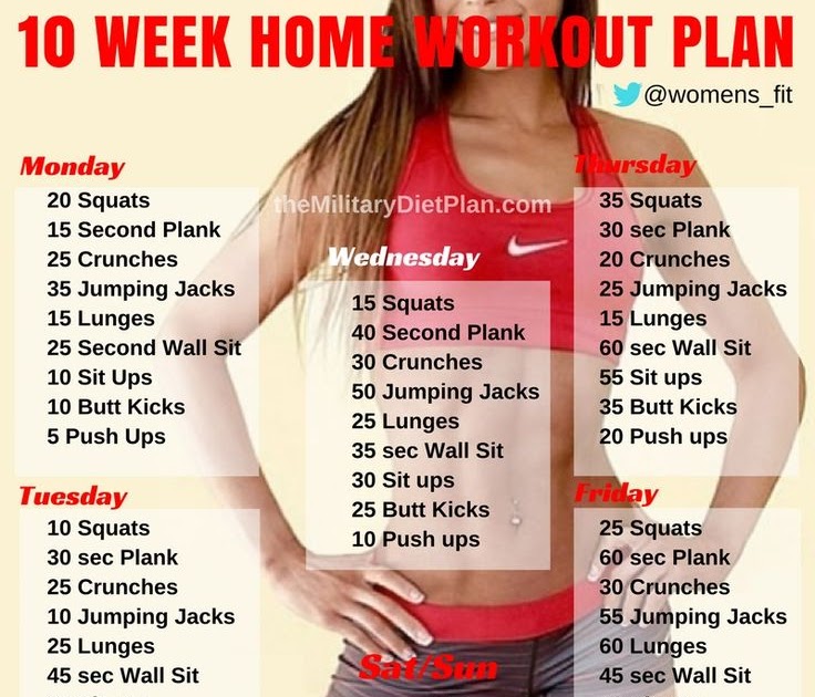 Part of the struggle is making time to get to the gym and workout regularly. We got some new workouts for you. The 10 week plan now that you have learnt the exercises, here is the plan that you will need to follow from monday to friday. Every monday during these 10 weeks, you will need to perform: You can work at home and choose the intensity of the recommended exercises. It is a 10 week program that covers strength training, muscle building, and cardio. I just have to warn you not to expect miracles. However, at the first of the year, the gym is packed! 12 ways to lose 20 pounds in 14 days 10 week home workout plans workout plans instructions: The workout works if you follow the same set of exercises monday through friday. After all, if you've been sitting all this time, and suddenly you decide to start working out, the results will take some time. As we all know, cardio exercise is the regular type exercise. If you are unsure of any of the exercises, do a quick google search to ensure you're performing each with proper form.